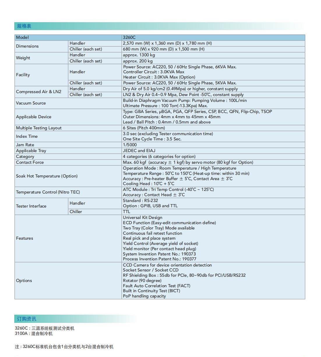 Chroma 3260C是一台全新搭载Chroma混合制冷机(Hybrid Chiller)的系统板三温测试分类机(SLT Handler),结合Chroma最新温控技术Nitro TEC,可支援六站同时进行FullRange(-40℃~125℃)的主动式温控测试,并且透过专属的混合制冷机可有效提升测试站升降温速度,进而缩短整体测试时间。